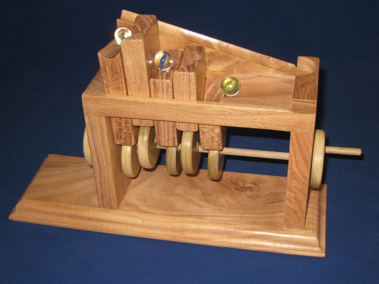 Dime goes in one side, navigate through internal mazes to get it out the other.